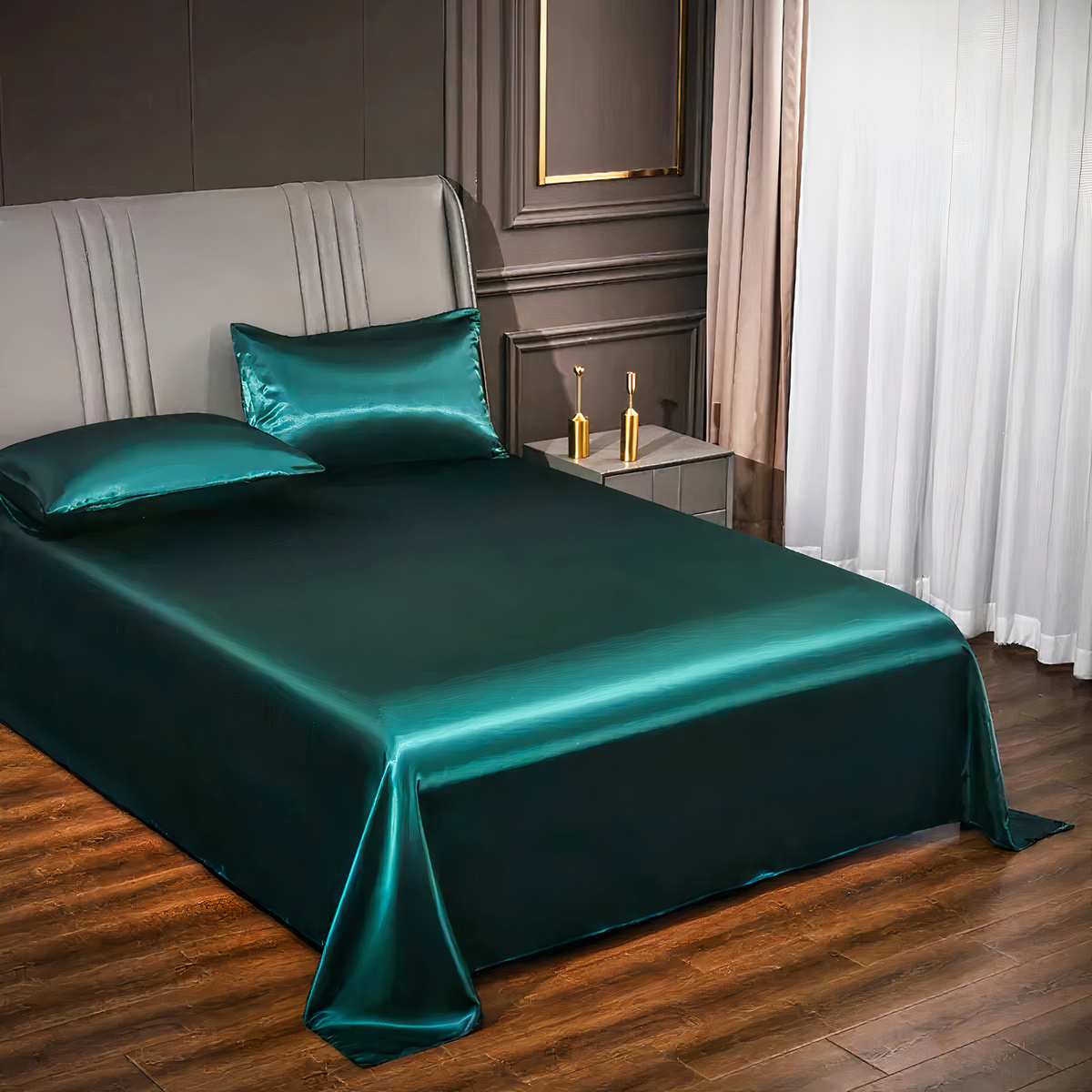 Le drap plat infroissable en satin est l’incarnation même de la praticité et du confort pour la peau. Grâce à sa texture lisse et soyeuse, il glisse sans effort sur le lit, permettant une installation rapide et sans plis en un clin d’œil.
