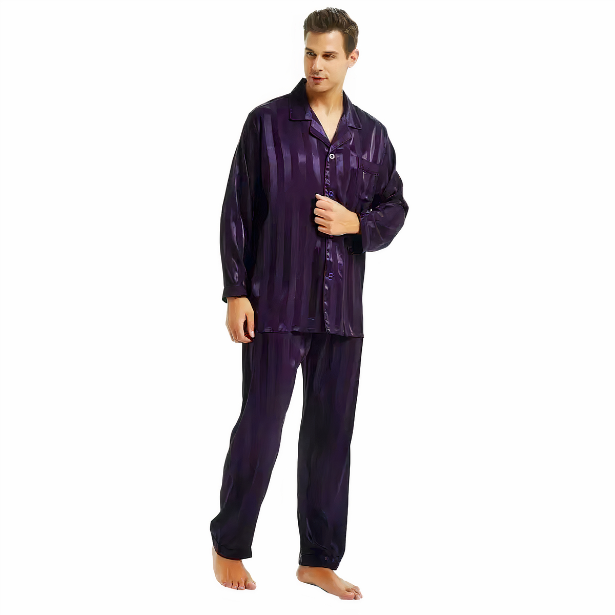 Dormez paisiblement dans un pyjama de satin. Le satin est une matière douce et soyeuse, très agréable à porter. C’est aussi une matière qui garde votre corps à la bonne température, vous pourrez donc le porter toute l’année. Découvrez notre collection de pyjama en satin, une gamme pour hommes et femmes qui aiment se sentir beau pour dormir.