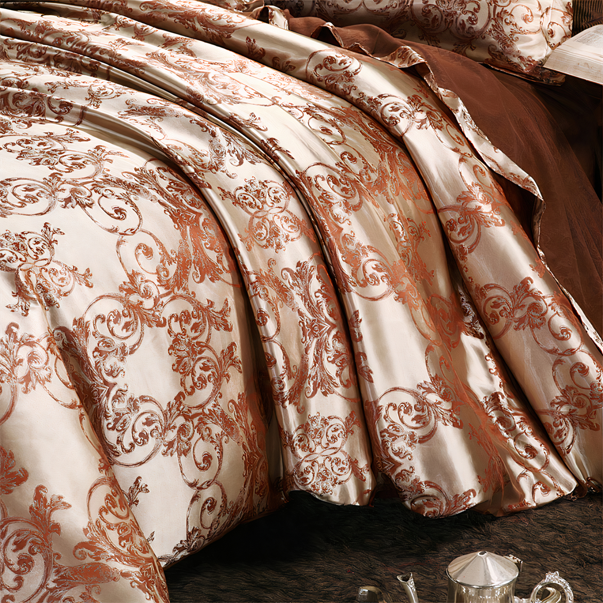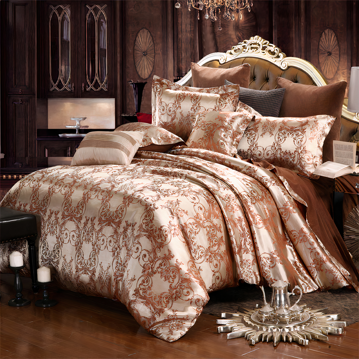 Ajoutez une touche de grandeur à votre chambre avec notre parure de lit en satin imprimé baroque. Cette pièce exceptionnelle illumine instantanément votre espace, transformant votre chambre en un véritable joyau de raffinement et d’élégance.