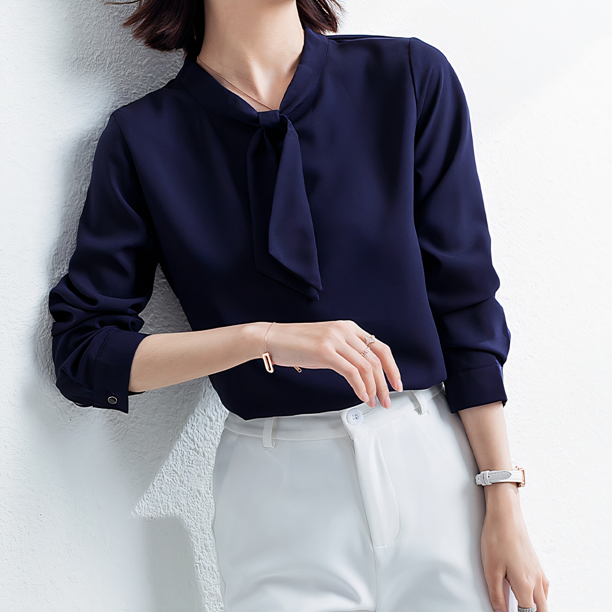 Ajoutez une touche d’élégance intemporelle à votre garde-robe avec notre blouse en satin nouée au cou. Polyvalente et sophistiquée, cette blouse se marie facilement avec une variété de bas et peut être portée pour de nombreuses occasions. Associez-la à un pantalon habillé pour une allure professionnelle au bureau, ou à une jupe crayon pour un look chic en soirée.