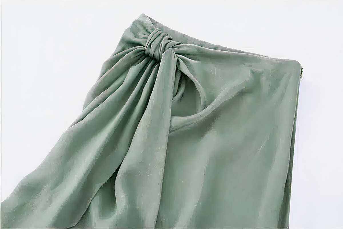 Un doux satin qui donne un reflet légèrement brillant et sera confortable à porter. La jupe est fendue sur le même côté que le noeud pour laisser paraître votre jambe et vous donner de l’aisance.