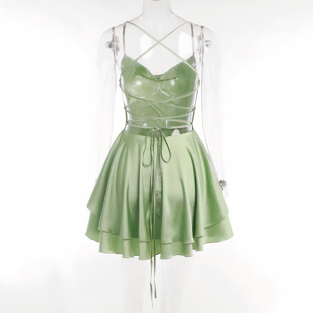 Ses bretelles fines se croisent dans votre dos pour se nouer avec un lacet et apportent une note de sensualité à votre tenue. Cette robe est votre alliée idéale pour une soirée animée ou une journée décontractée pour profiter des rayons du soleil. Une tenue parfaite pour se sentir confortablement bien habillée.