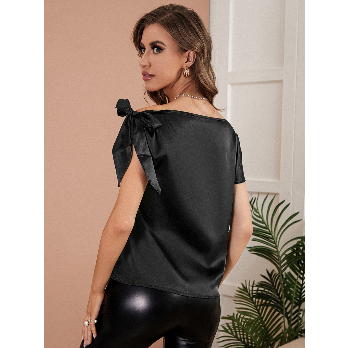 Exprimez-vous avec notre T-shirt en satin asymétrique disponible en trois couleurs vibrantes: noir, rouge et vert. Que vous préfériez une allure classique et sophistiquée en noir, une touche audacieuse et passionnée en rouge, ou une sensation de fraîcheur et de vitalité en vert, ce T-shirt vous permet de choisir la couleur qui correspond le mieux à votre humeur et à votre style.