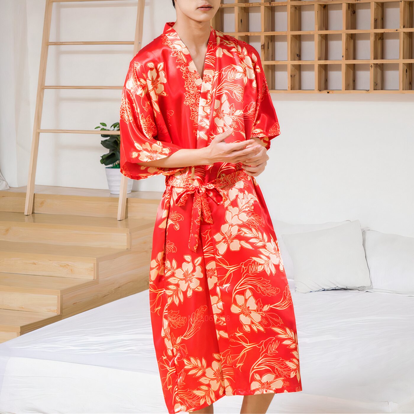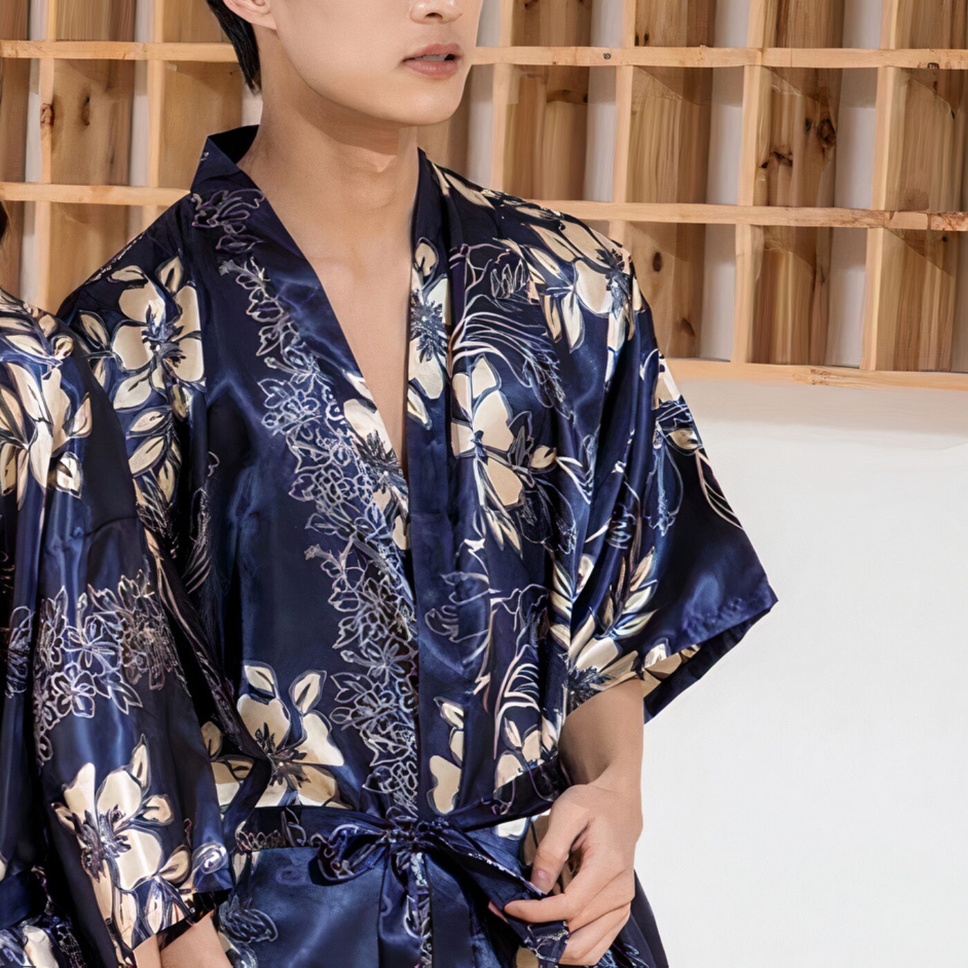 Offrez-vous un moment de détente avec style grâce à notre kimono à fleurs pour homme. Fabriqué dans un satin doux et lumineux, ce kimono est orné de motifs floraux délicats, ajoutant une touche de fraîcheur et de raffinement à votre look.
